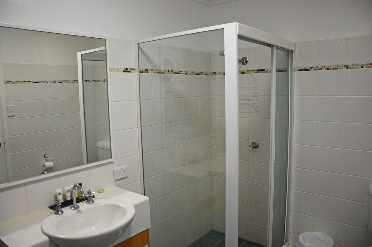 Enjoy the spacious living area, complete with ceiling fans in the loungeroom, main bedroom, and second bedroom, ensuring a cool and comfortable stay. The apartment includes a TV, DVD and CD players for entertainment, and a well-equipped kitchen with a microwave, dishwasher, and an ensuite to the main bedroom.