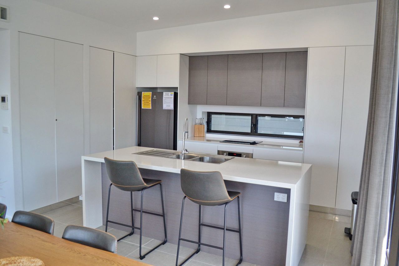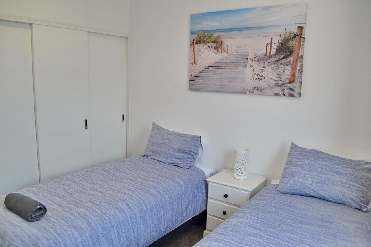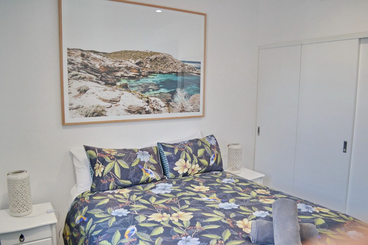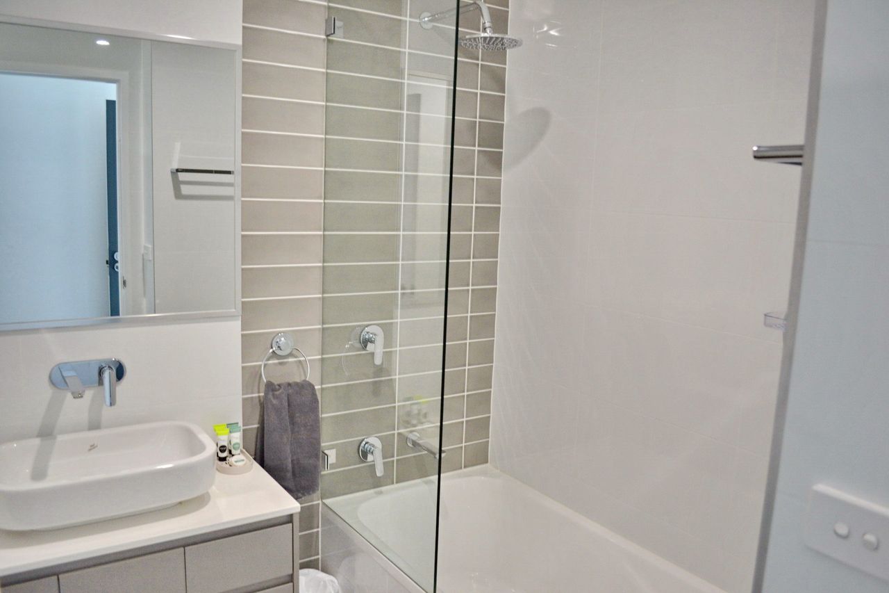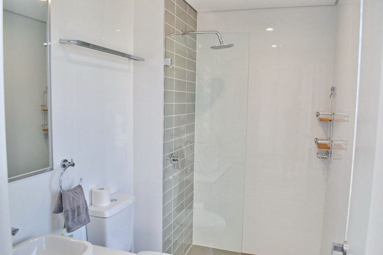 Inside, the open-plan living, dining, and kitchen area features a dishwasher, Wi-Fi, a large flat-screen TV, and a DVD player. The main bedroom includes an ensuite bathroom and an additional wall-mounted TV. The apartment also offers a private laundry with a washer and dryer. Convenient lift access is available from two spaces in the secure underground car park, which includes a lock-up cage suitable for beach gear, bicycles, or even a kayak. Park your car upon arrival and enjoy walking to nearby shops, restaurants, beautiful beaches, or a refreshing swim at Back Creek.
