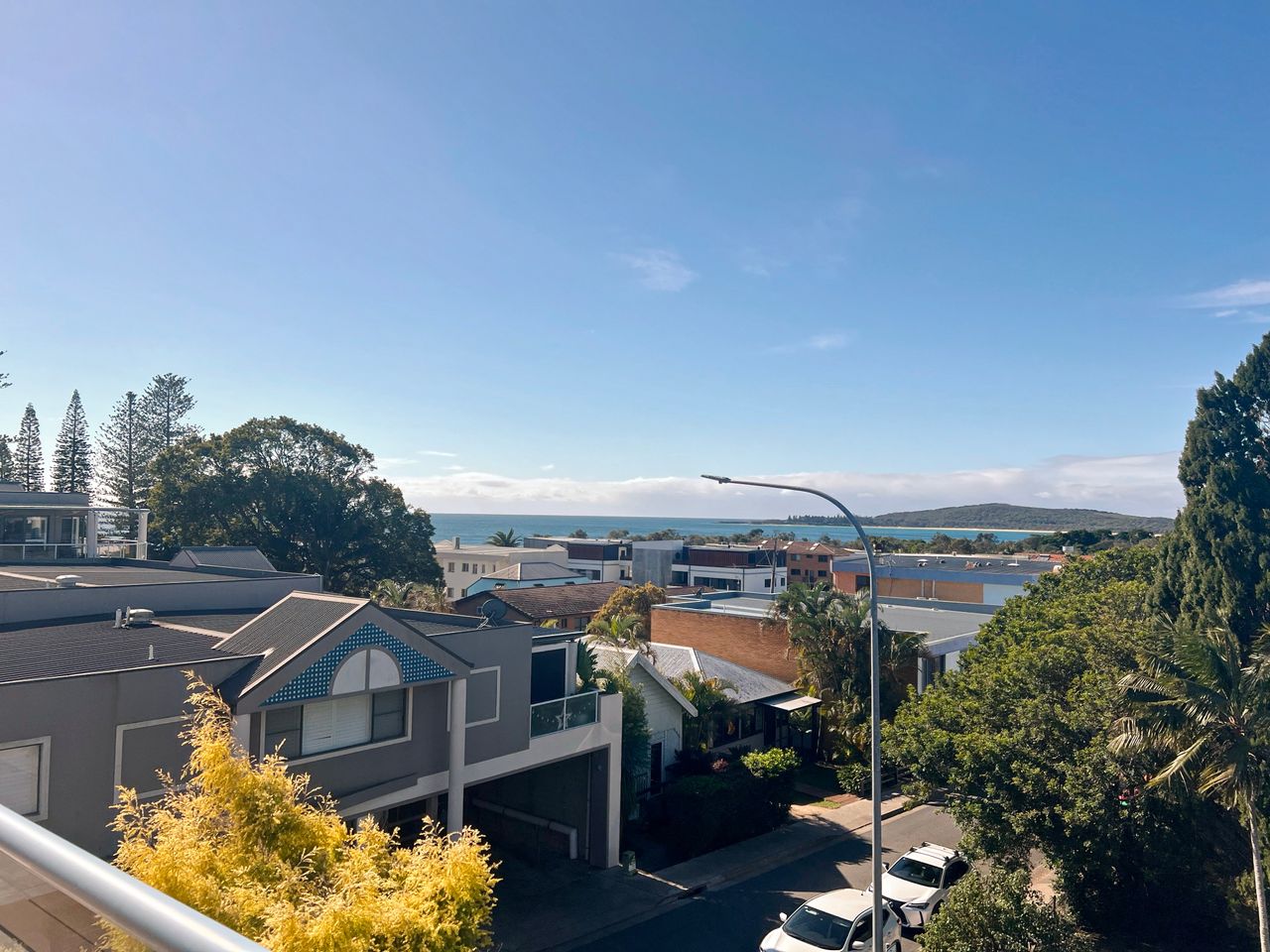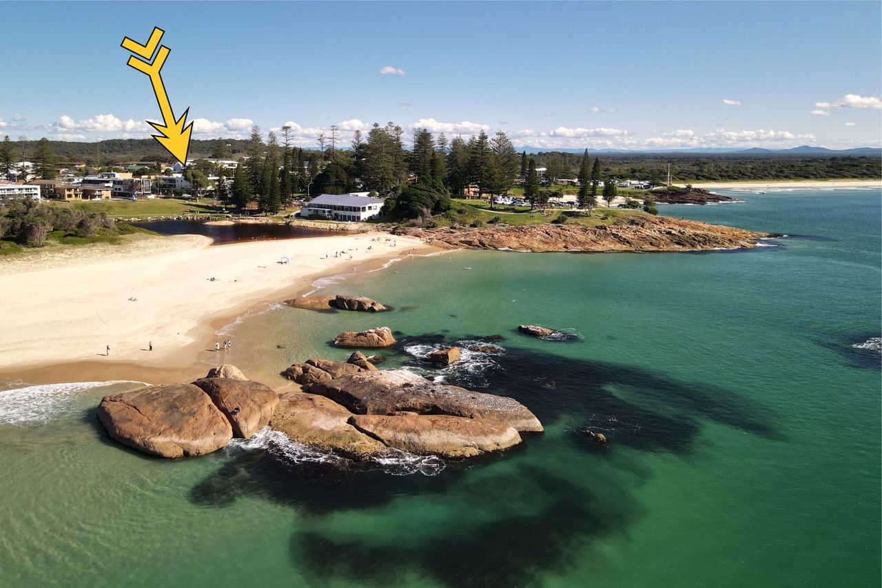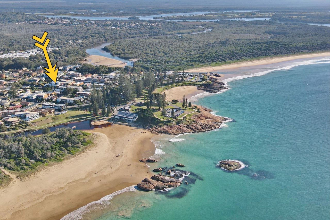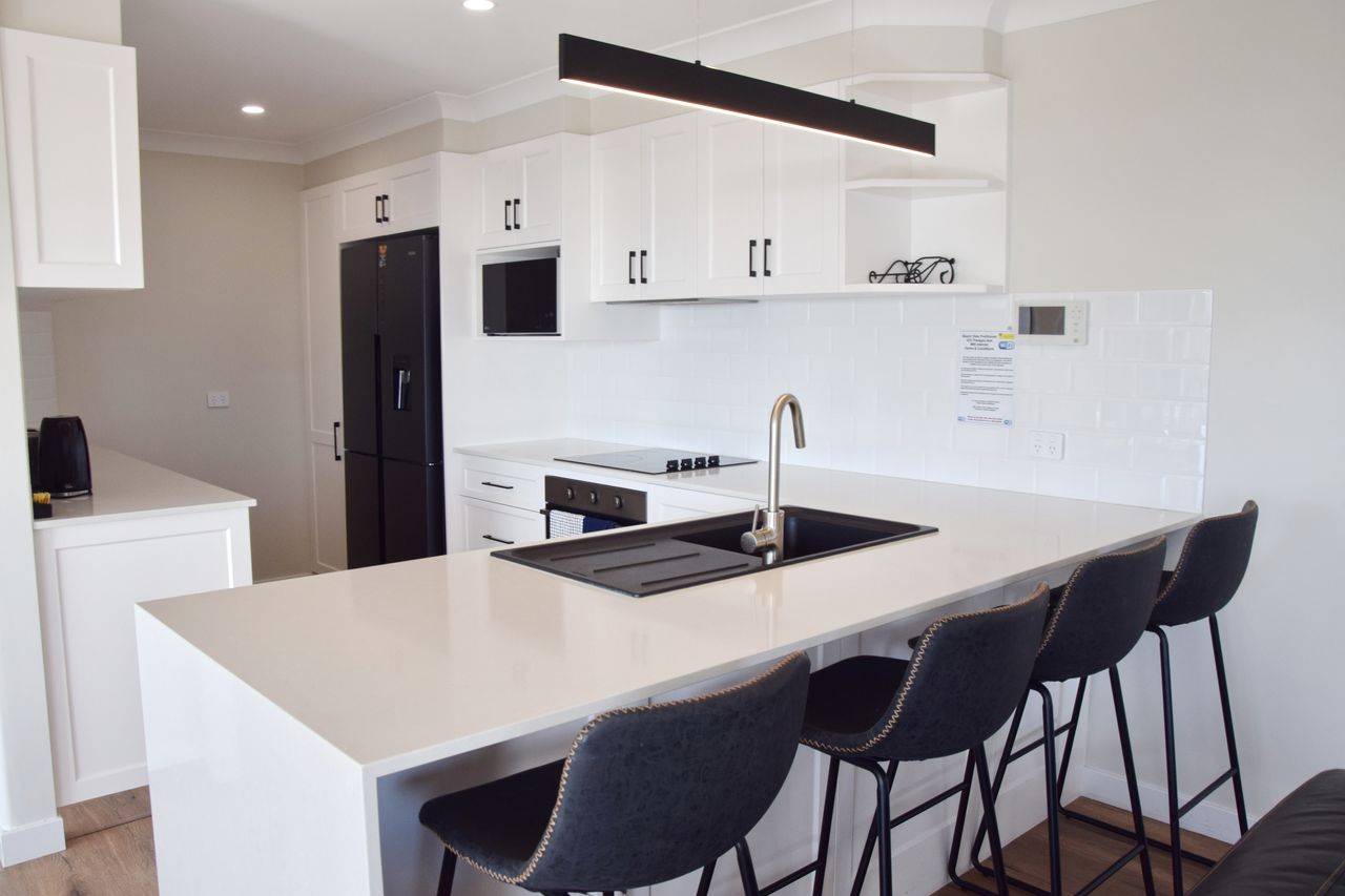 This stunningly renovated three-bedroom penthouse apartment offers a sophisticated modern aesthetic and a prime location in the heart of town. The open-plan living, dining, and kitchen area features sleek modern appliances, creating a perfect space for relaxation and entertaining. Each bedroom is appointed with a luxurious queen bed, while the new ensuite and main bathroom add a touch of elegance. Freshly updated with new flooring and blinds throughout, this immaculate apartment also includes air-conditioning and Wi-Fi for your comfort. Step out onto the expansive balcony, complete with shade awnings, an outdoor dining setting, and a gas BBQ, where you can enjoy breathtaking views of the town centre, Trial Bay, and Arakoon.