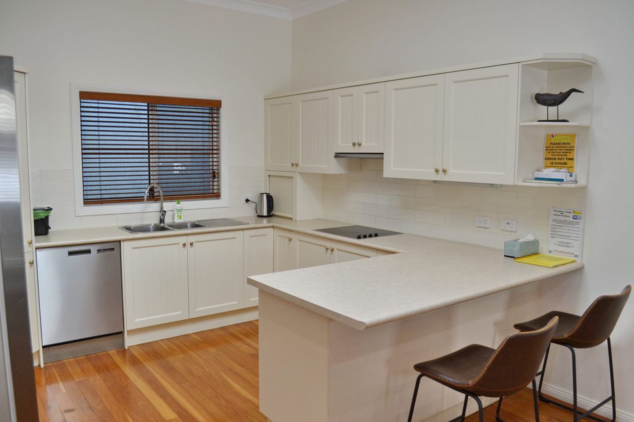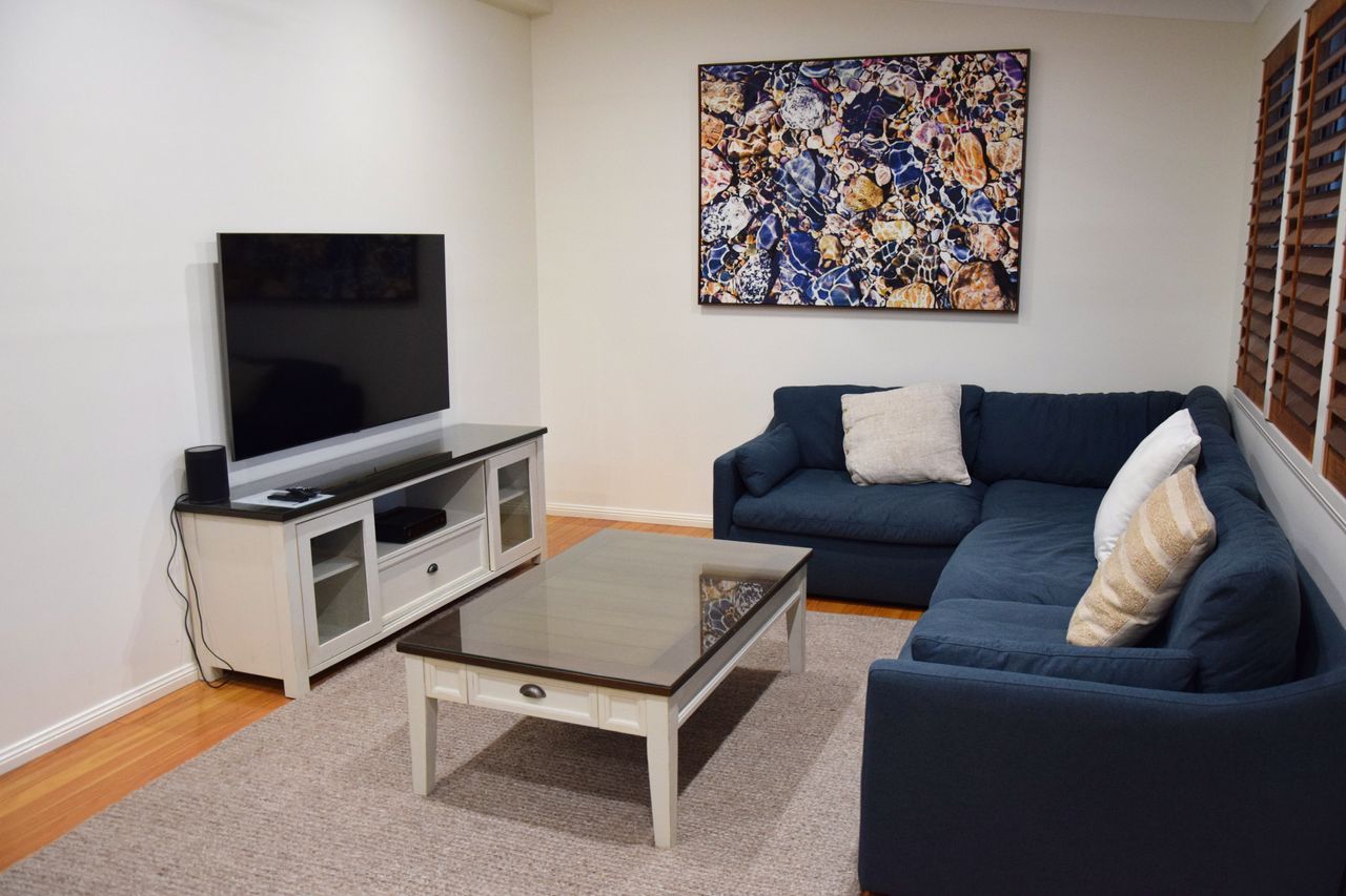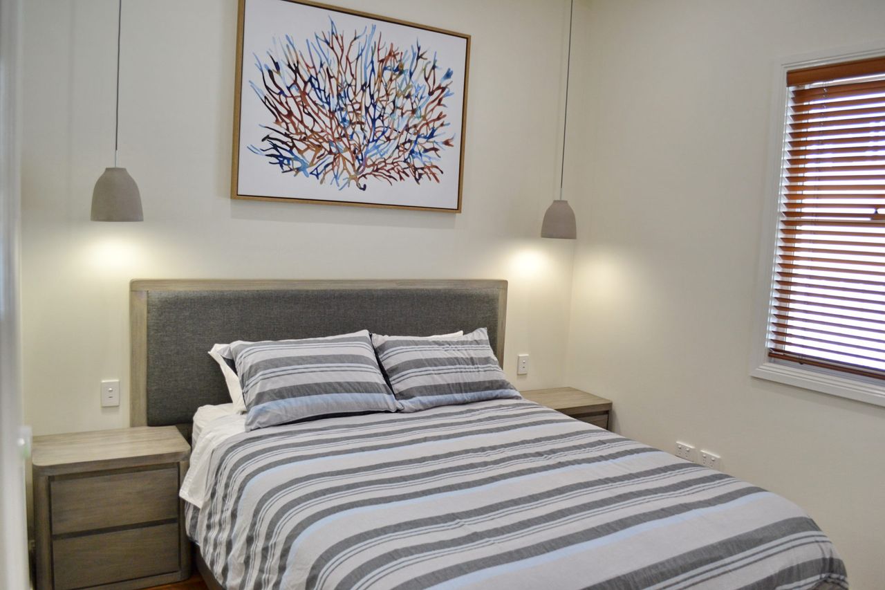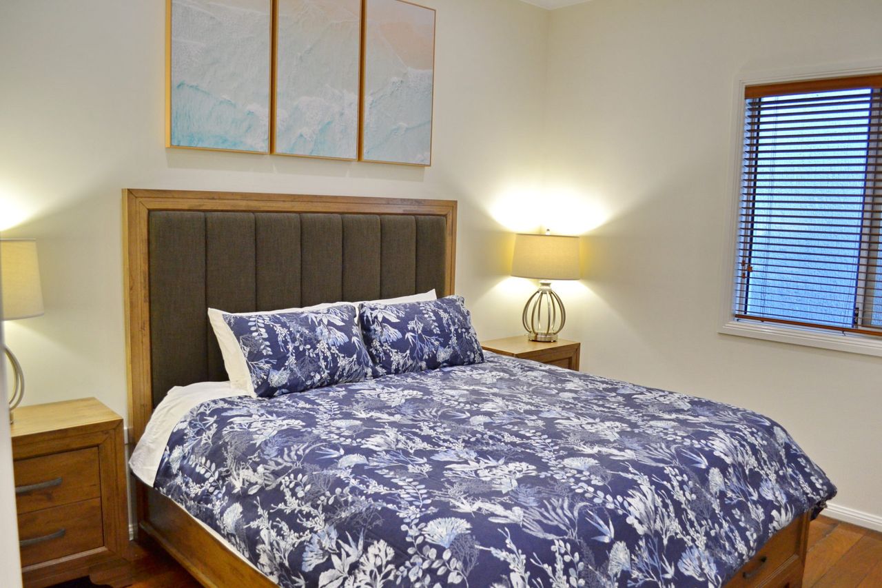 The spacious lounge invites you to relax on the plush sofa or in a cozy chair while enjoying your favorite shows on the large Foxtel-equipped TV. A modern, fully equipped kitchen with high-quality appliances makes cooking effortless. Ducted air conditioning, ceiling fans, and refreshing sea breezes ensure comfort year-round.