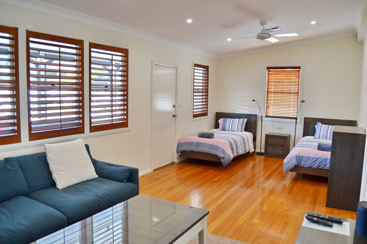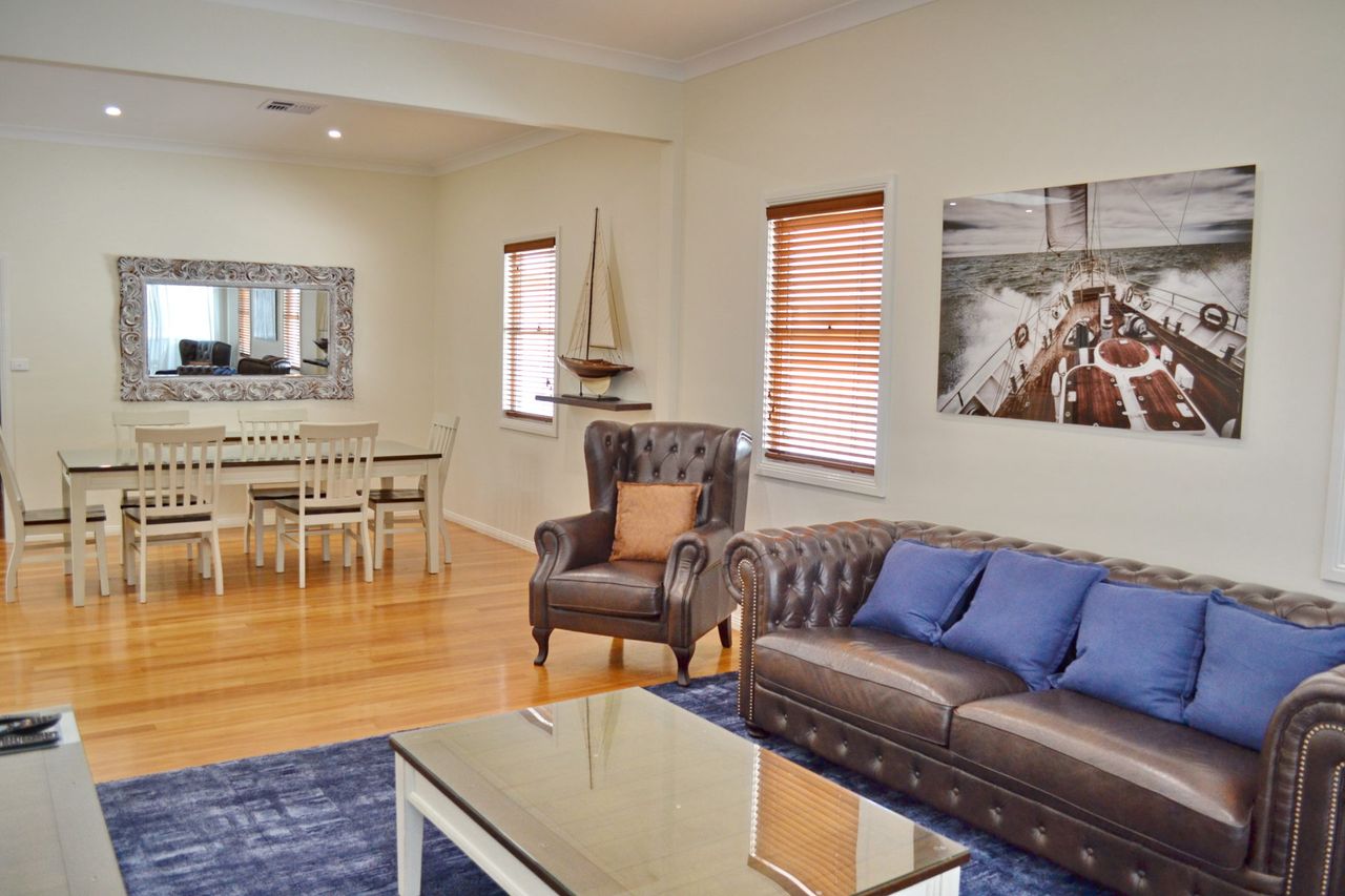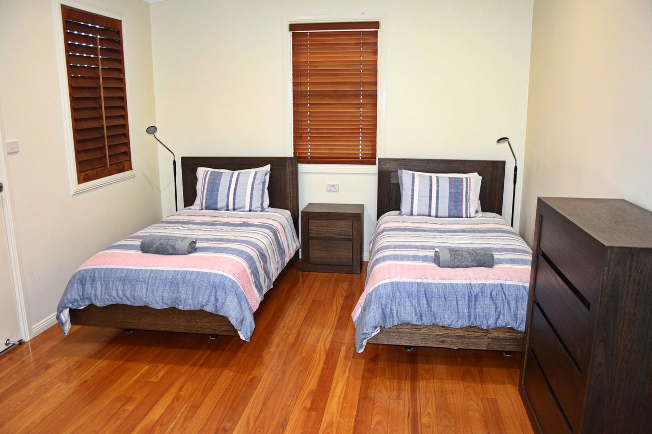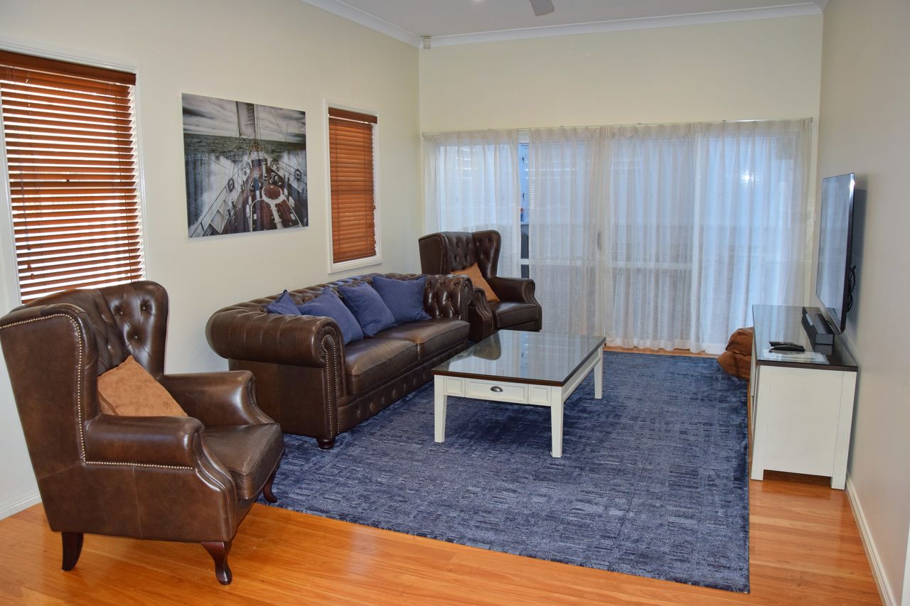 The spacious lounge invites you to relax on the plush sofa or in a cozy chair while enjoying your favorite shows on the large Foxtel-equipped TV. A modern, fully equipped kitchen with high-quality appliances makes cooking effortless. Ducted air conditioning, ceiling fans, and refreshing sea breezes ensure comfort year-round.