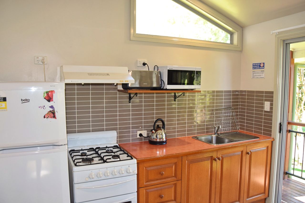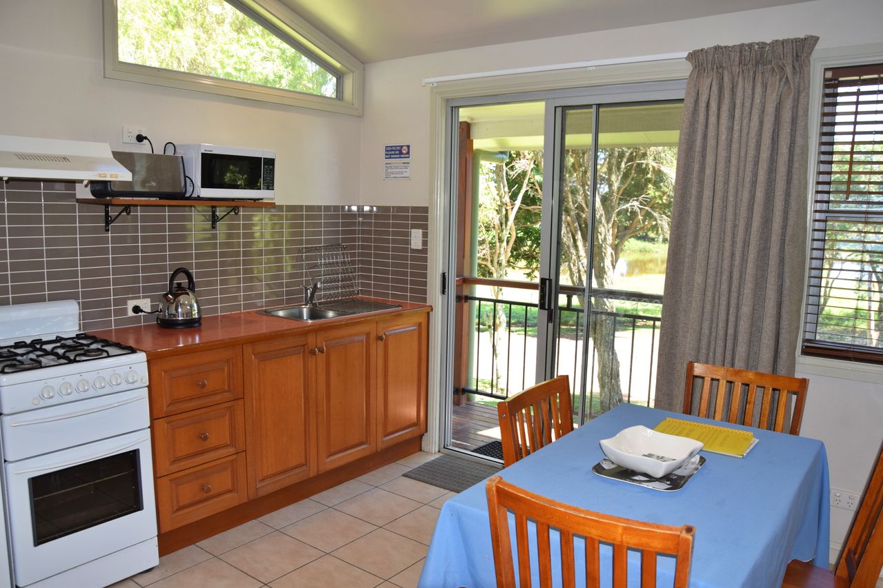 Cabin 5 is a modern self contained cabin with unobstructed views of the Macleay River. Complete with own bathroom and fully equipped kitchen with fridge, stove, oven, microwave, toaster, kettle, crockery, cutlery and cooking utensils. The cabin also has a TV, DVD player and Wi-fi.Other facilities include a well appointed BBQ area, coin operated laundry facilities, private boat ramp and fish cleaning facilities to allow for that hassle free fishing experience!