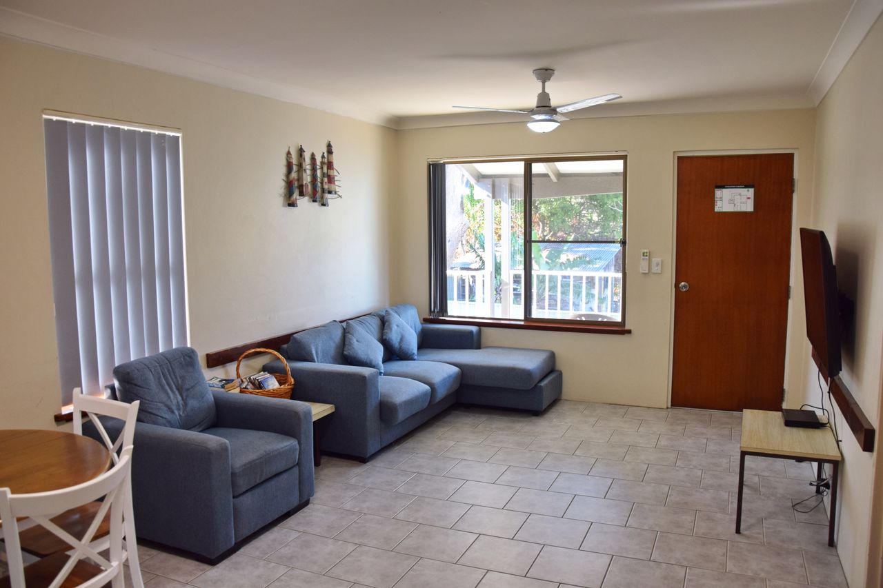 This unit is at the back of the complex. It has air conditioning and you can just park your car and walk to Main beach, town centre or the country club.
