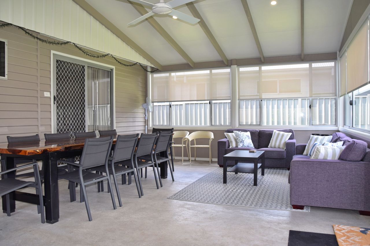 • A newly enclosed, screened outdoor area, perfect for entertaining. Equipped with lounge suite and large dining setting, outside there is a covered Bbq, it’s the perfect place to unwind after a day exploring.