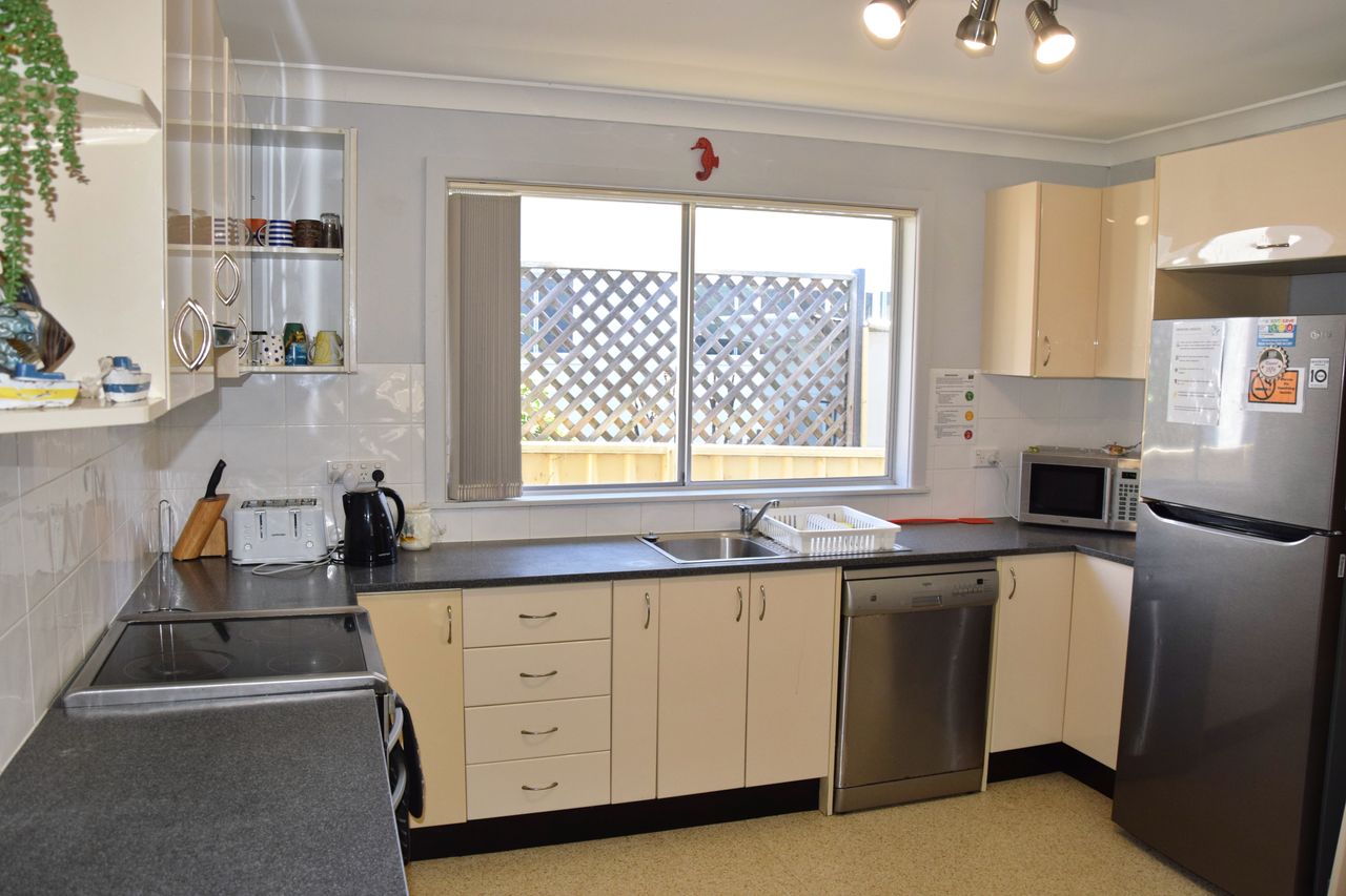 Kylie - 22nd January 2018We loved our stay at this beach house, it has everything you need for a great holiday & is in a good location. The house & detached granny flat can fit up to 8 people combined, all mattresses are comfortable & clean. The house has good amenities with two toilets & a bathroom with heat lamp & laundry with washing machine, the kitchen is also very well equipped with all appliances, cups, plates, pans, cutlery etc. There are quiet ceiling fans in all rooms & a great quality new air conditioner in the main living area, with a separate good working aircon unit also in the granny flat. The granny flat also has its own TV & lounge (you enter through the shed). They also have a fresh herb garden in the backyard that you can use & a fully stocked book shelf with many novels, magazines & some games as well - we thought this was a nice touch! Overall we were very happy with this property & would stay here again. You can even park right outside the front door & its only a very short walk (5-10 min) to main beach & centre of town, & an even shorter walk to the country club just around the corner! The fridge can be a bit noisy at times & the lounge & carpet areas are in need of a good steam clean, but this is to be expected with frequent shared use & age, other than that Flounder About is a really great house, with ample space for a large family & good value. The real estate was also a pleasure to deal with at all times, with check in/check out made easy & flexible for late arrival/departure.