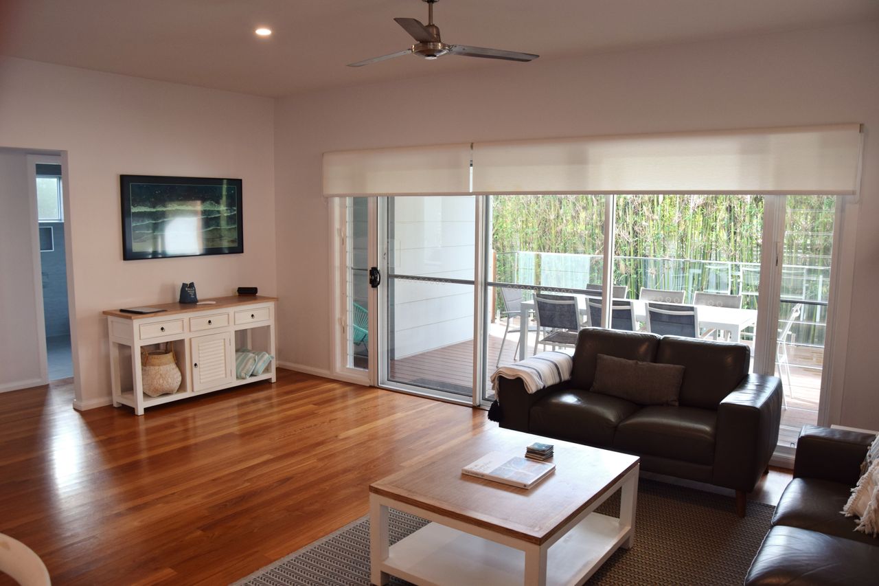The home features a modern kitchen equipped with a dishwasher, and the spacious open-plan living area boasts timber flooring that flows seamlessly onto a fantastic rear deck. Relax in the nor-east sea breezes on the deck’s outdoor setting or enjoy a BBQ with the gas grill provided.