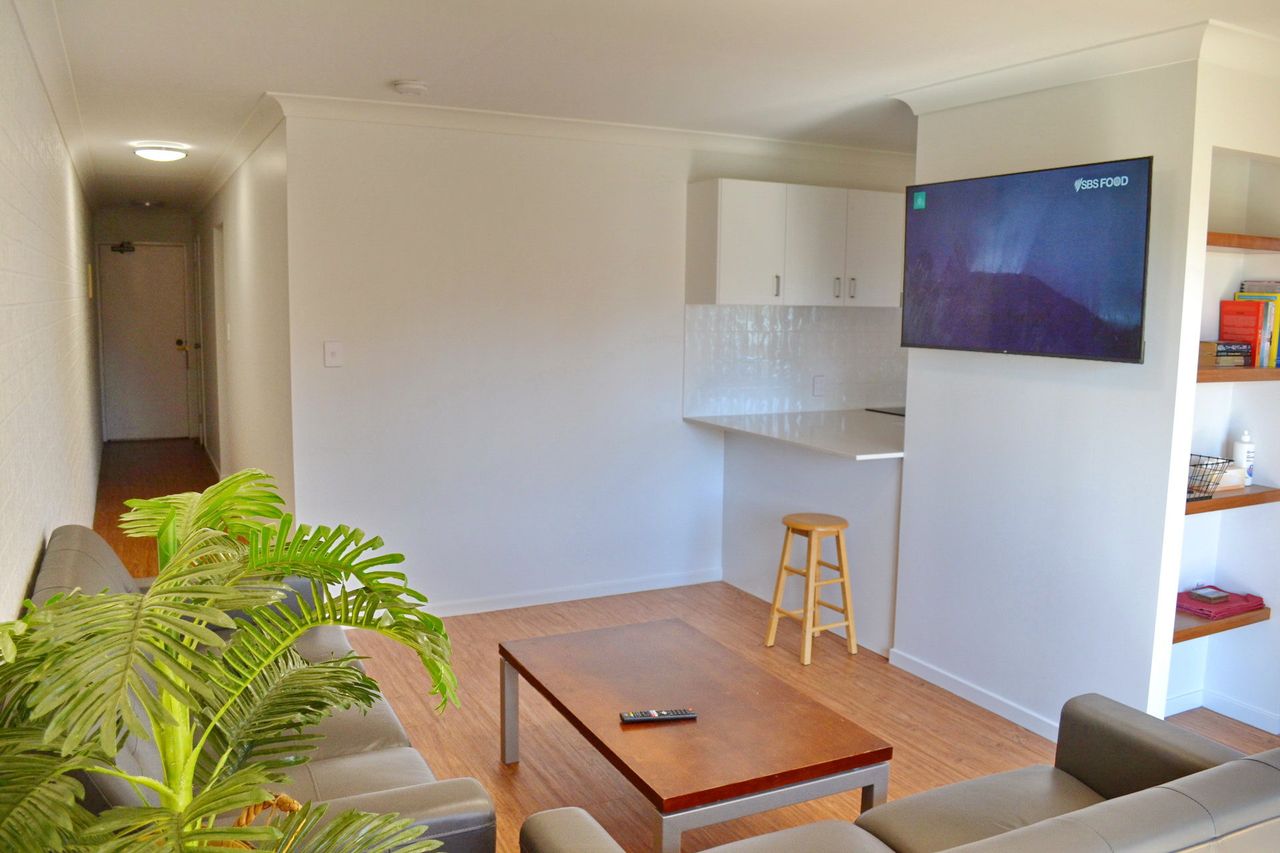 This beautifully renovated top-floor two-bedroom unit offers comfort, convenience, and a prime location, sleeping up to 5 guests. Enjoy a relaxing escape with a north-facing balcony that catches the sea breeze, a ceiling fan in the main bedroom, and all the amenities you need, including a TV, DVD player, and your own laundry with a washer and dryer.
