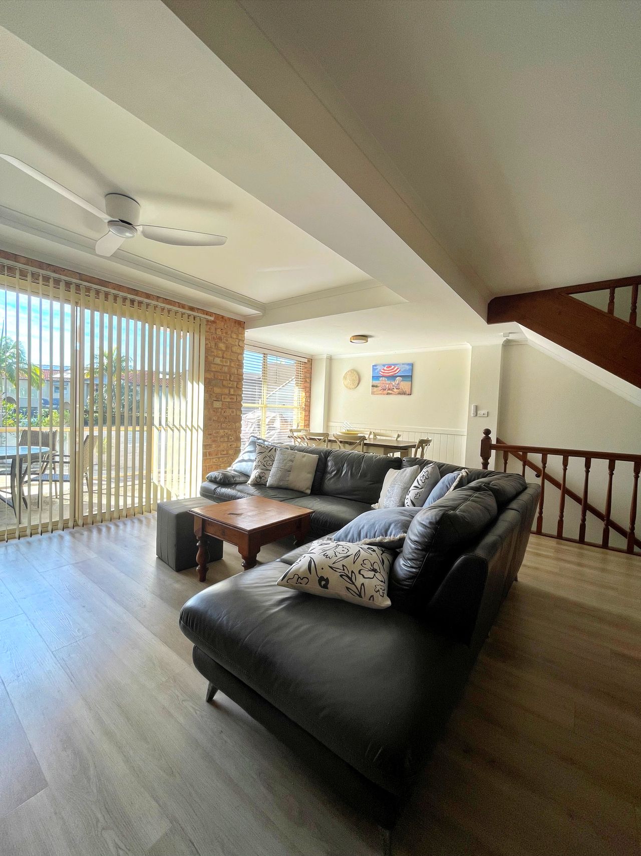 The main floor has an open plan living, dining and kitchen area that creates a bright and inviting space. Unwind in air-conditioned comfort or enjoy the sea breeze with ceiling fans. The fully equipped kitchen is complete with all the essential appliances. The living area provides a comfortable space to relax and watch the huge Smart TV after a day at the beach, or a dip in the complex swimming pool. If alfresco dining is your thing, just step out onto the balcony to enjoy a gas BBQ.