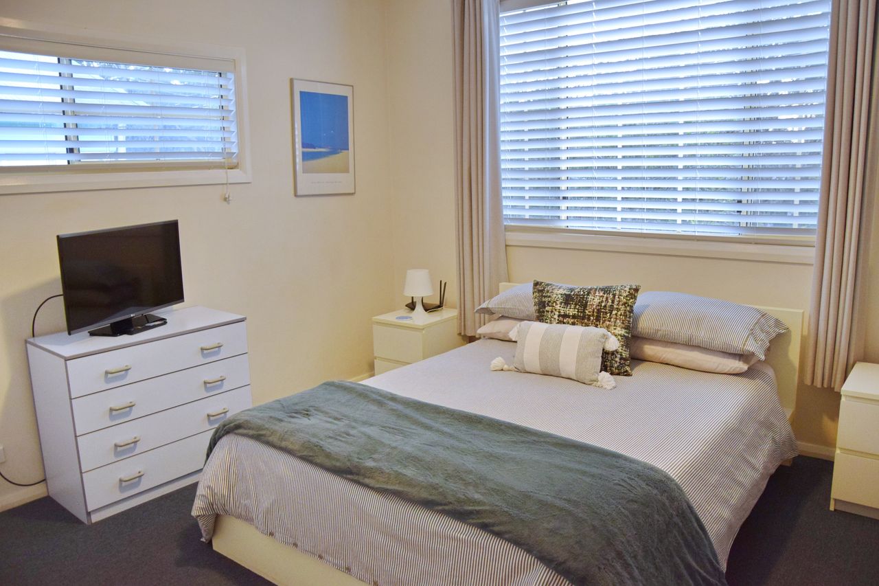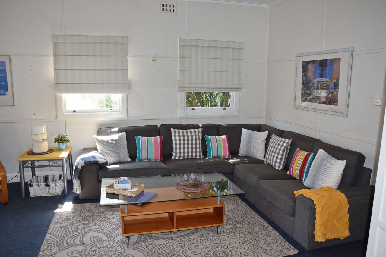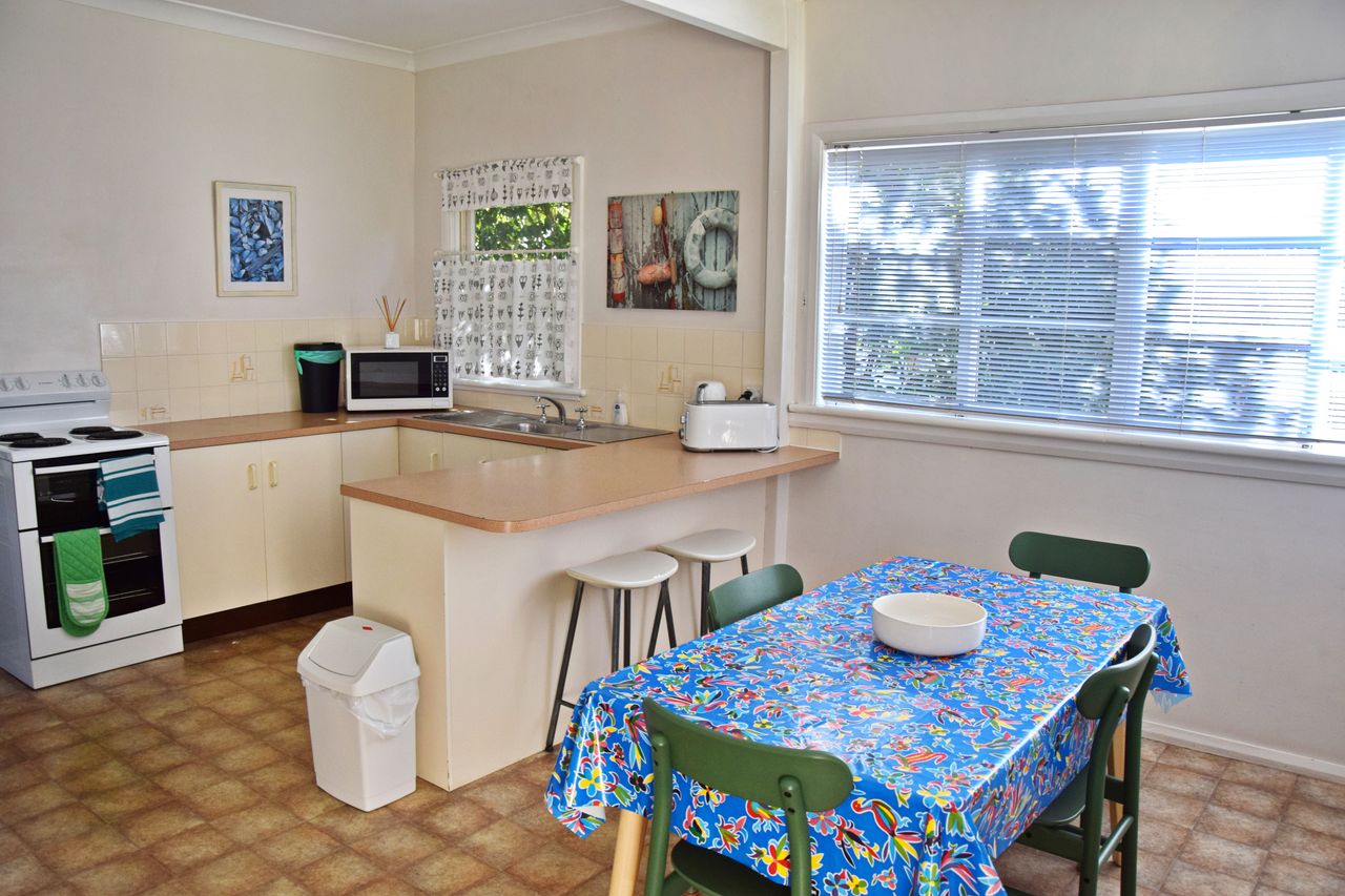 Just a few minutes' walk from the town, beach, and Back Creek, this bright and airy three-bedroom beach house offers everything you need for a relaxing getaway. Fresh linen is provided for all beds, along with bath towels. The newly installed air-conditioning cools the entire house, and you'll find Wi-Fi, two televisions, a DVD player, and a well-equipped kitchen. The lounge room opens onto a large, covered deck, perfect for outdoor living. The house also boasts ceiling fans are in all bedrooms and living areas to keep cool for the whole summer. Additional features include a separate second shower and toilet in the laundry, a washing machine and dryer, boat parking, a single garage, a fully fenced yard, and a gas BBQ.