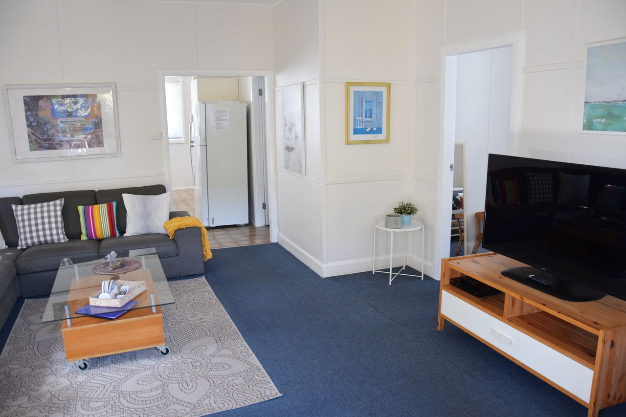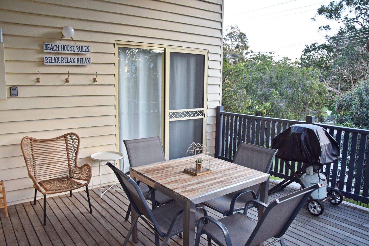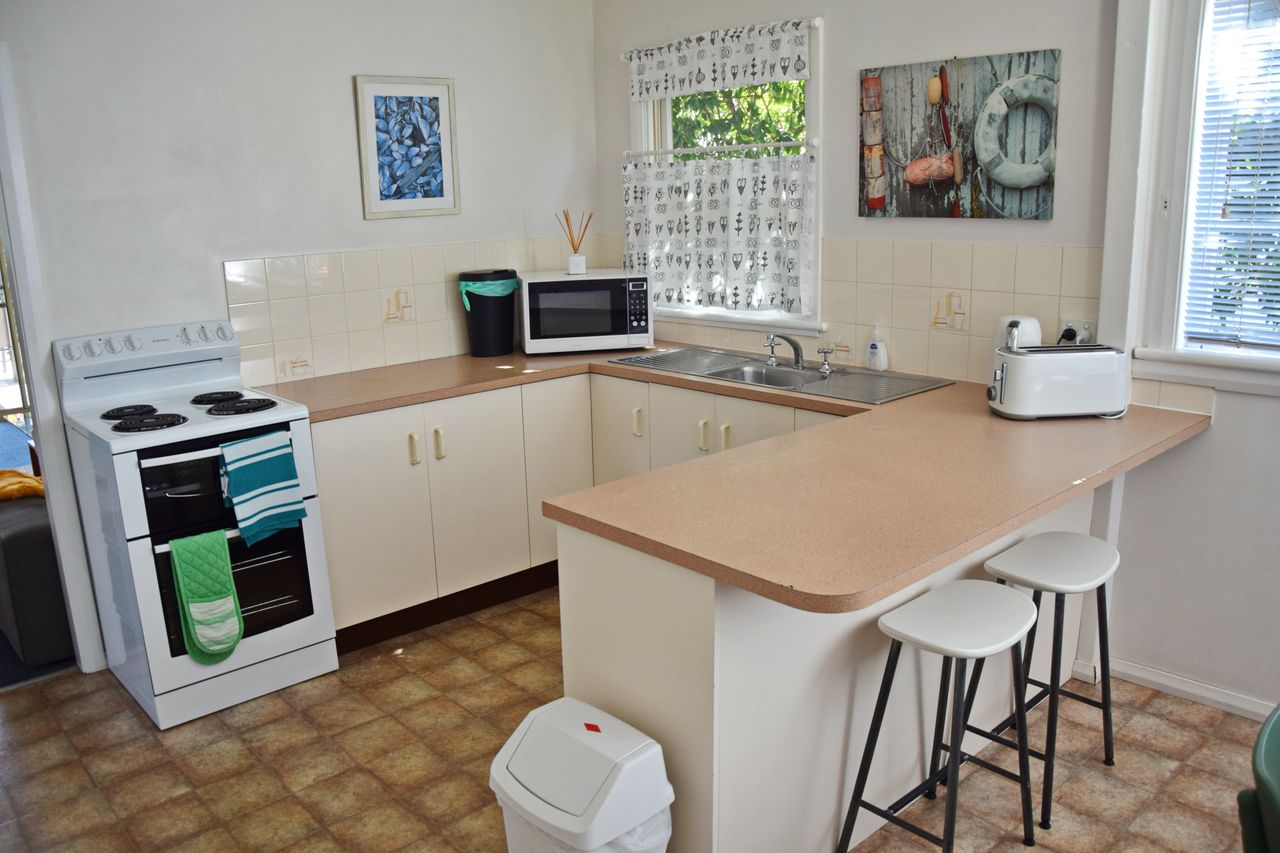 Just a few minutes' walk from the town, beach, and Back Creek, this bright and airy three-bedroom beach house offers everything you need for a relaxing getaway. Fresh linen is provided for all beds, along with bath towels. The newly installed air-conditioning cools the entire house, and you'll find Wi-Fi, two televisions, a DVD player, and a well-equipped kitchen. The lounge room opens onto a large, covered deck, perfect for outdoor living. The house also boasts ceiling fans are in all bedrooms and living areas to keep cool for the whole summer. Additional features include a separate second shower and toilet in the laundry, a washing machine and dryer, boat parking, a single garage, a fully fenced yard, and a gas BBQ.